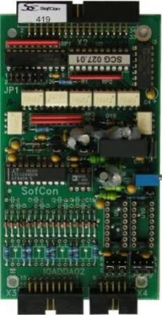 Deska IOADDA02 obsahuje 12bitový aproximační A/D převodník, který umožňuje připojit 8 unipolárních nebo 4 diferenciální analogové vstupy. Dále obsahuje dva dvojnásobné 12bitové D/A převodníky. Řídicí strana je od analogové galvanicky oddělena. K řídicí jednotce se deska připojuje přes IO bus.