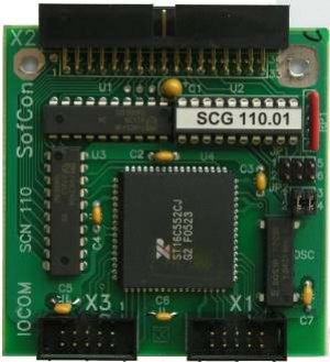 Deska IOCOM obsahuje dvě rozhraní COM bus na úrovni TTL. K řídicí jednotce je připojena přes sběrnici IOBUS. K rozhraní COM bus se připojují COM moduly (COM232S, COM232L, COM232SI, COM485I, ...), které převádějí TTL signály úrovně HCT na úrovně potřebné pro požadované rozhraní.