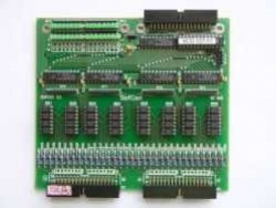 Data jsou z IOBUS zapisována do 4 registrů po 8 bitech. Tyto registry spínají přímo výstupní spínače. Výstupní spínače jsou realizovány pomocí optronů. Oba póly výstupních spínačů jsou vyvedeny na dva 34 pinové konektory X3 a X4. Každý výstup je opatřen ochrannou diodou a ochranným sériovým odporem.
