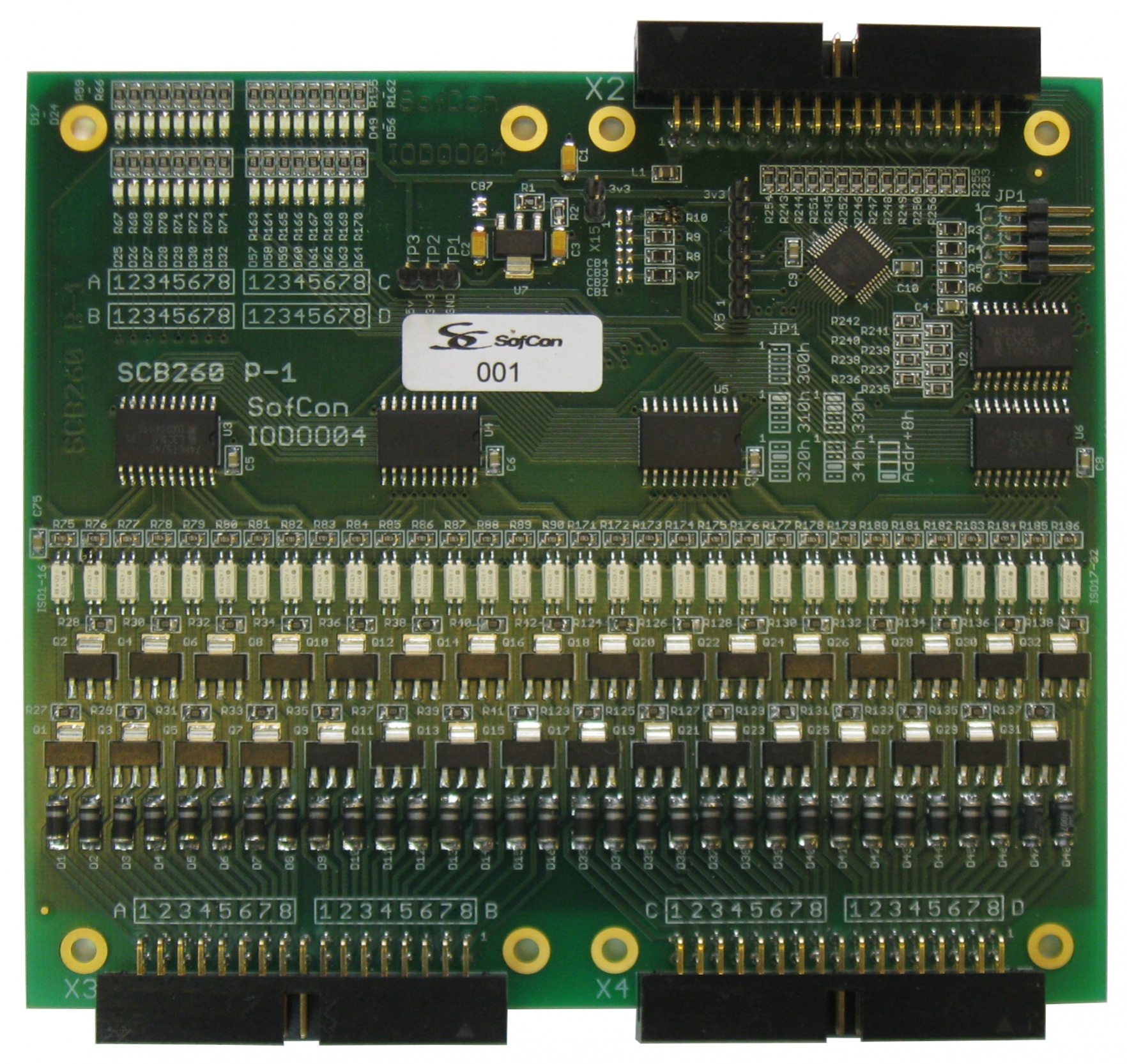 Oba póly výstupních spínačů jsou vyvedeny na dva 34 pinové konektory X3 a X4. Každý výstup je opatřen ochrannou diodou.