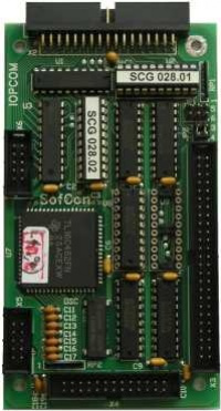 Deska IOPCOM obsahuje jedno rozhraní P bus, jedno rozhraní Centronics a dvě rozhraní COM bus na úrovni TTL. K řídicí jednotce se připojuje přes sběrnici IO bus. K rozhraní COM bus se připojují COM moduly, které převádějí TTL signály úrovně HCT na úrovně potřebné pro požadované rozhraní.