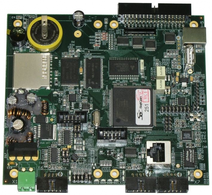 Základem je 32bitový procesor AT91SAM9260 se 32MB paměti RAM, 256MB NAND Flash diskem, 5ti sériovými komunikačními porty UART a 2 porty USB. Na desce je dále Ethernet, rozšíření o sběrnici IOBUS, 512kB zálohované paměti RAM, paměť FLASH, slot pro SD kartu, budiče sběrnic a pulsní napájecí zdroj.