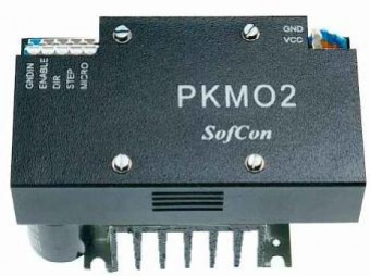 Modul PKM02 je kompaktní jednotka, která slouží k pohonu krokového motoru. Je složena z desky řízení a desky výkonových spínačů. Deska řízení přijímá od nadřízeného počítače informace o požadovaném směru a rychlosti otáčení motoru (DIR, STEP,MICRO a ENABLE). Generuje sekvence impulsů, kterými se pak na desce výkonových spínačů spínají proudové impulsy do fázových vinutí motoru.
