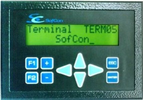 TERM05 is equipped with an LCD display with 2 x 16 alphanumeric characters and a membrane keyboard with 10 buttons.